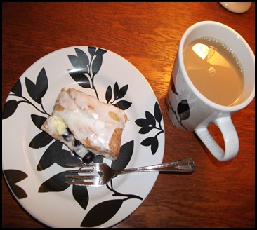 Canned breadsticks; cream cheese/sugar/egg; topped w/blueberries.